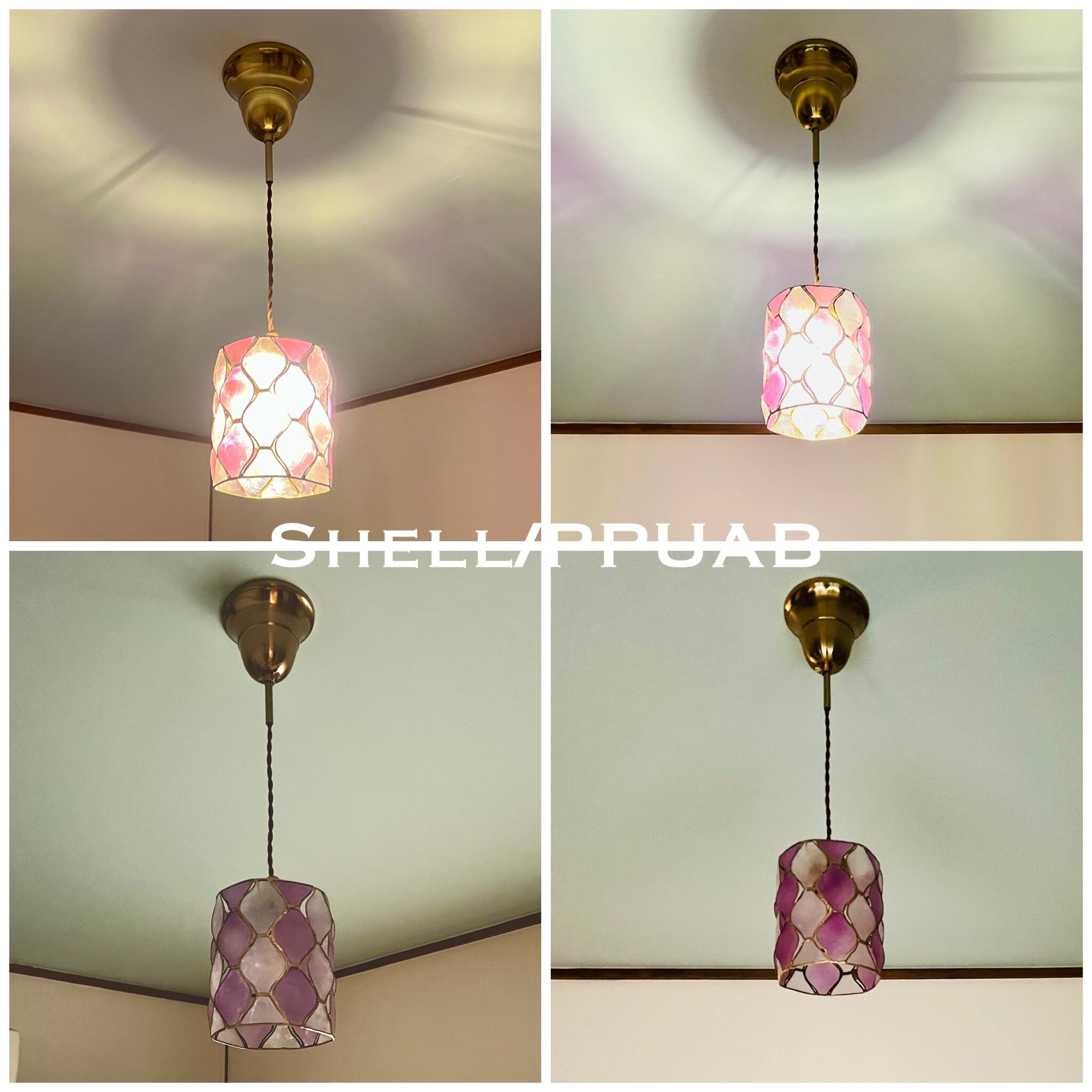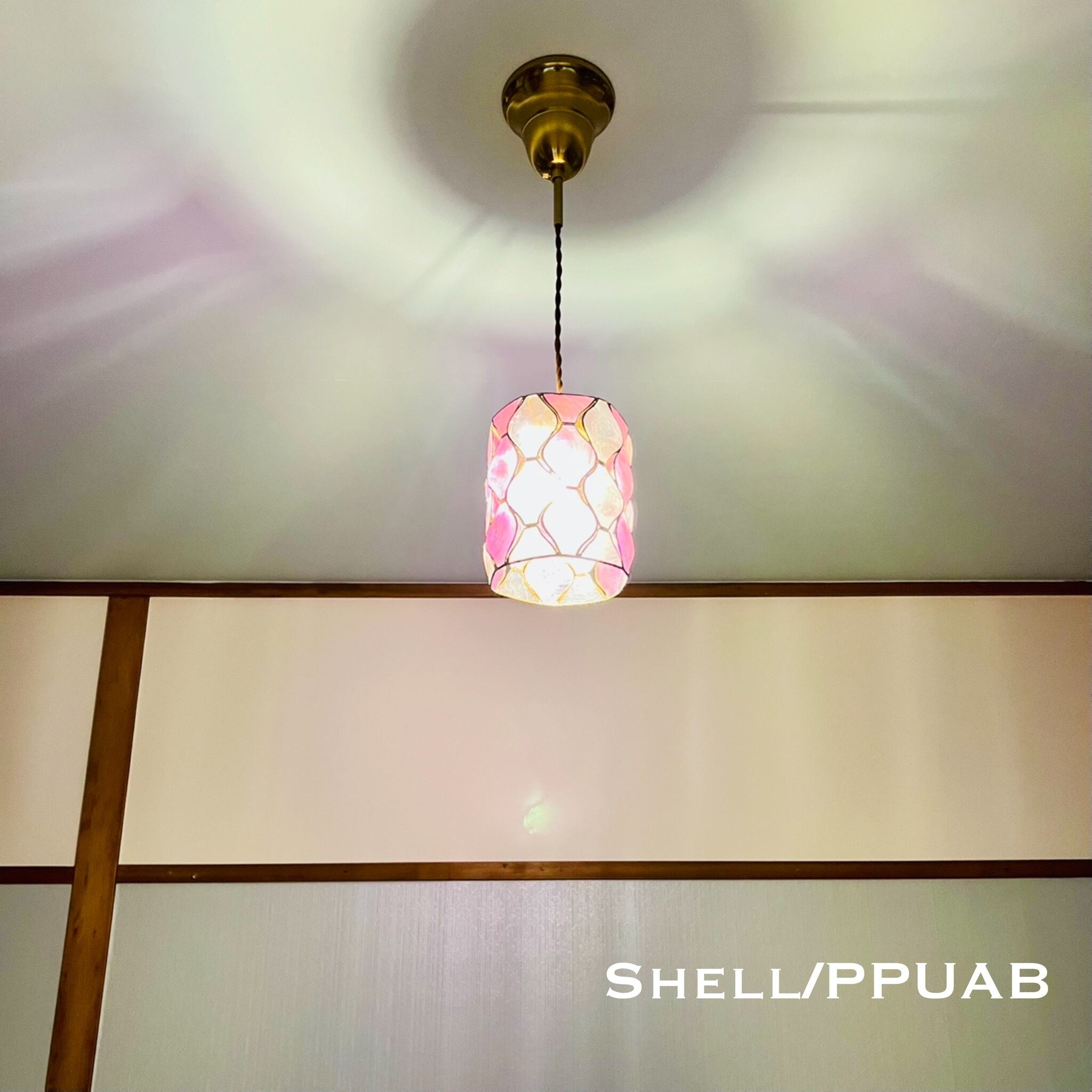 天井照明 ペンダントライト Shell/PPUAB カピス貝 ランプシェード コード調節収納 シーリングカバー レトロ インテリア