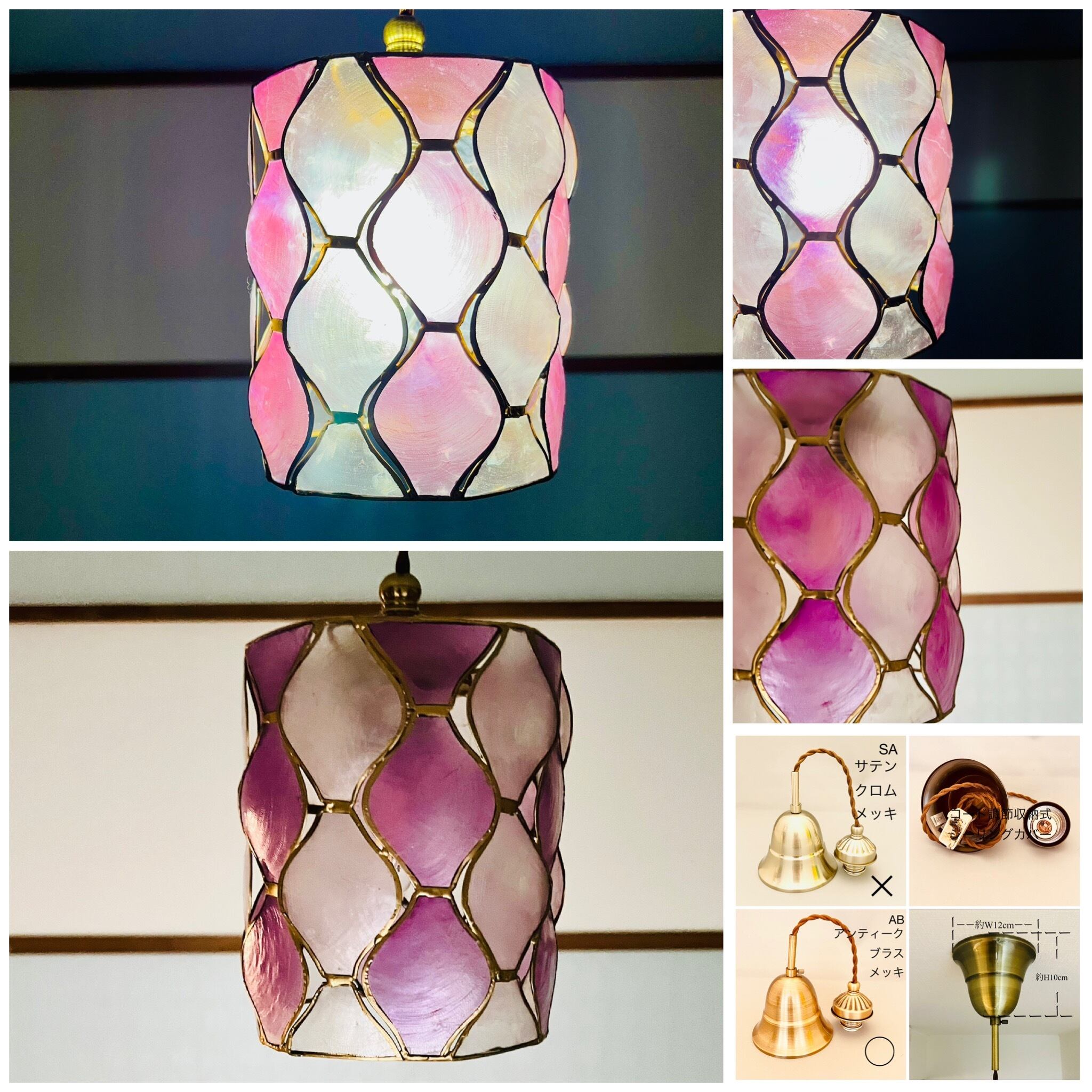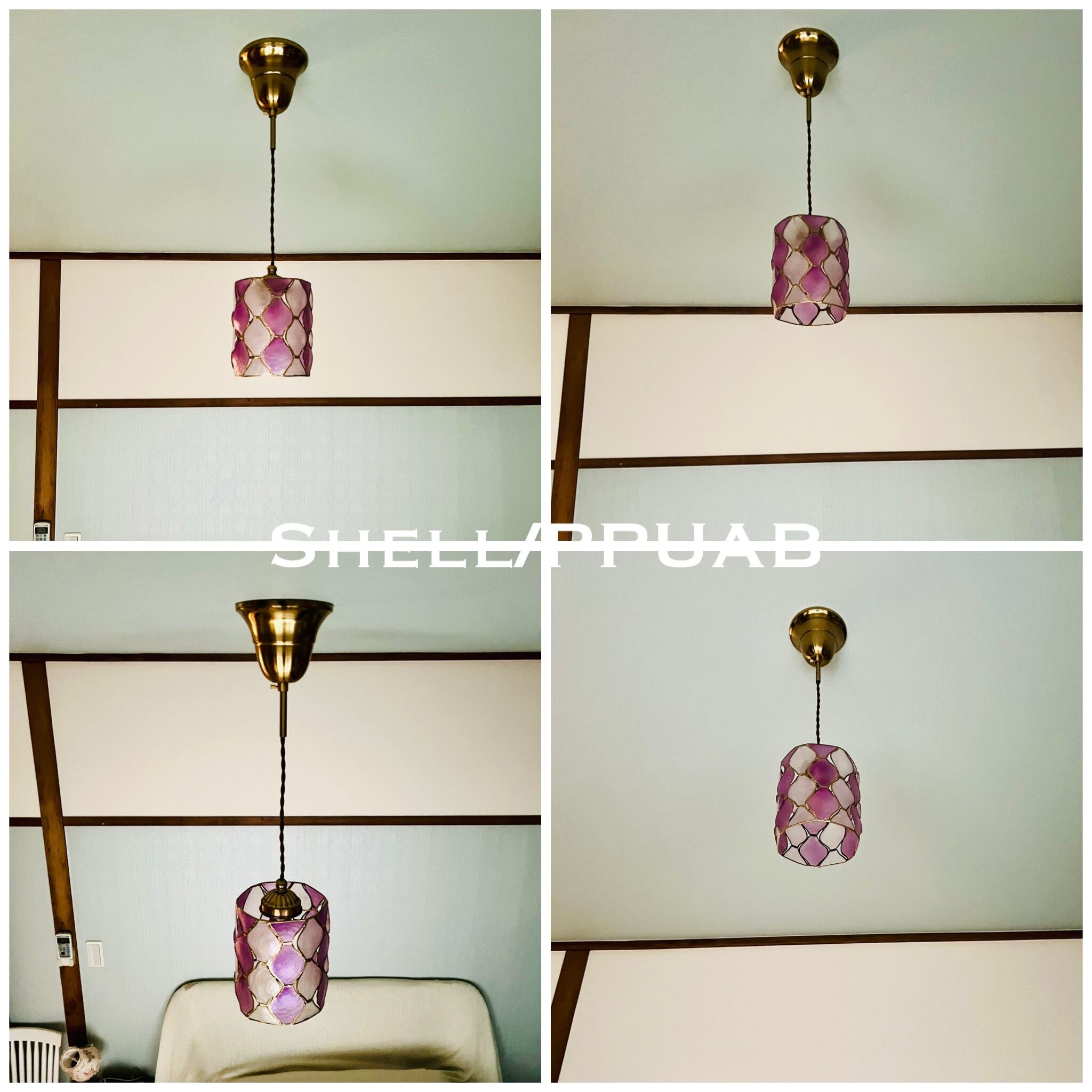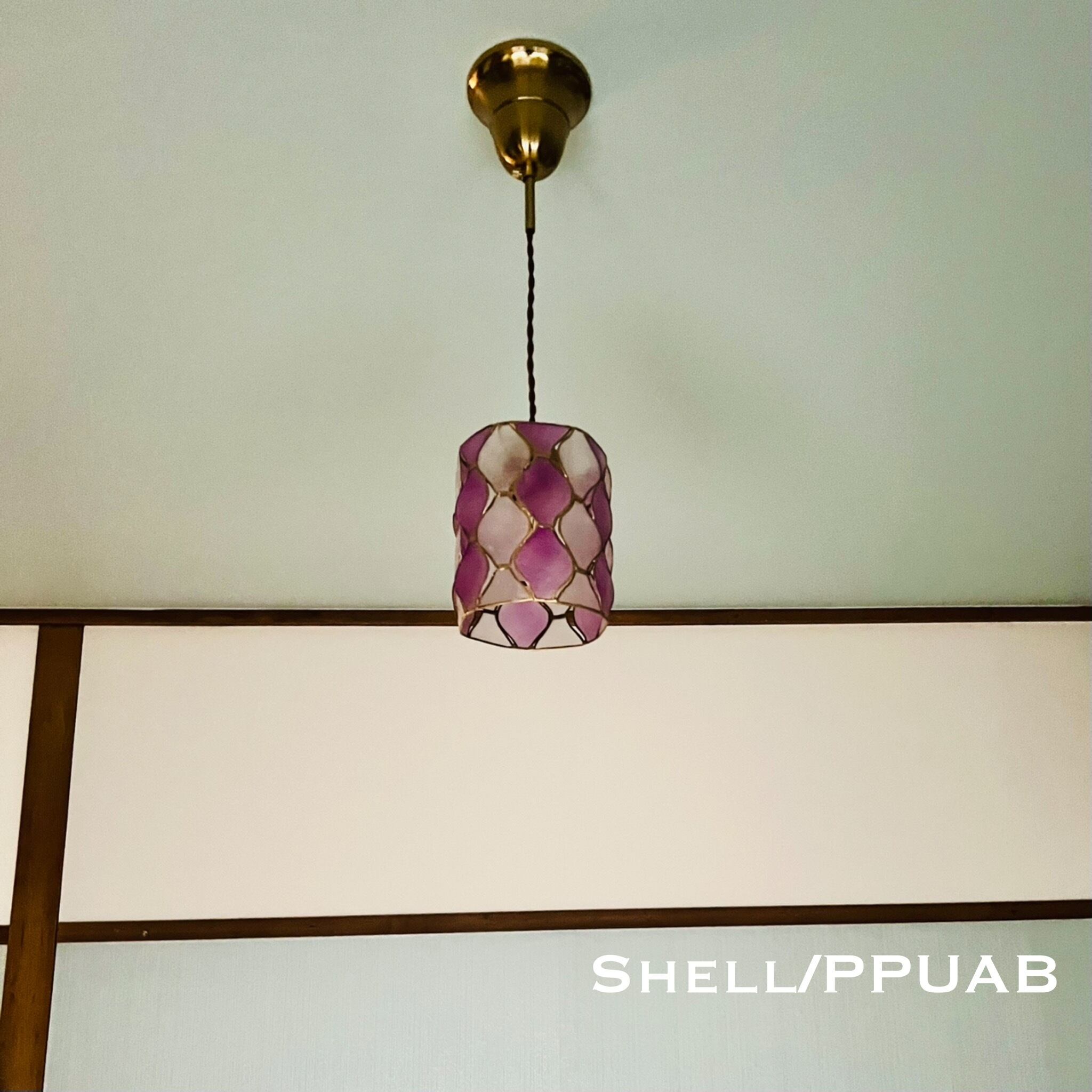 天井照明 Shell/PPUAB シェル ペンダントライト カピス貝 ランプシェード パープル E17磁器ソケット コード長調節収納式 アンティークブラスメッキ シェードホルダー シーリングカバー LED電球 白熱灯電球 使用可 電球別売 希望価格10,000円(税込)