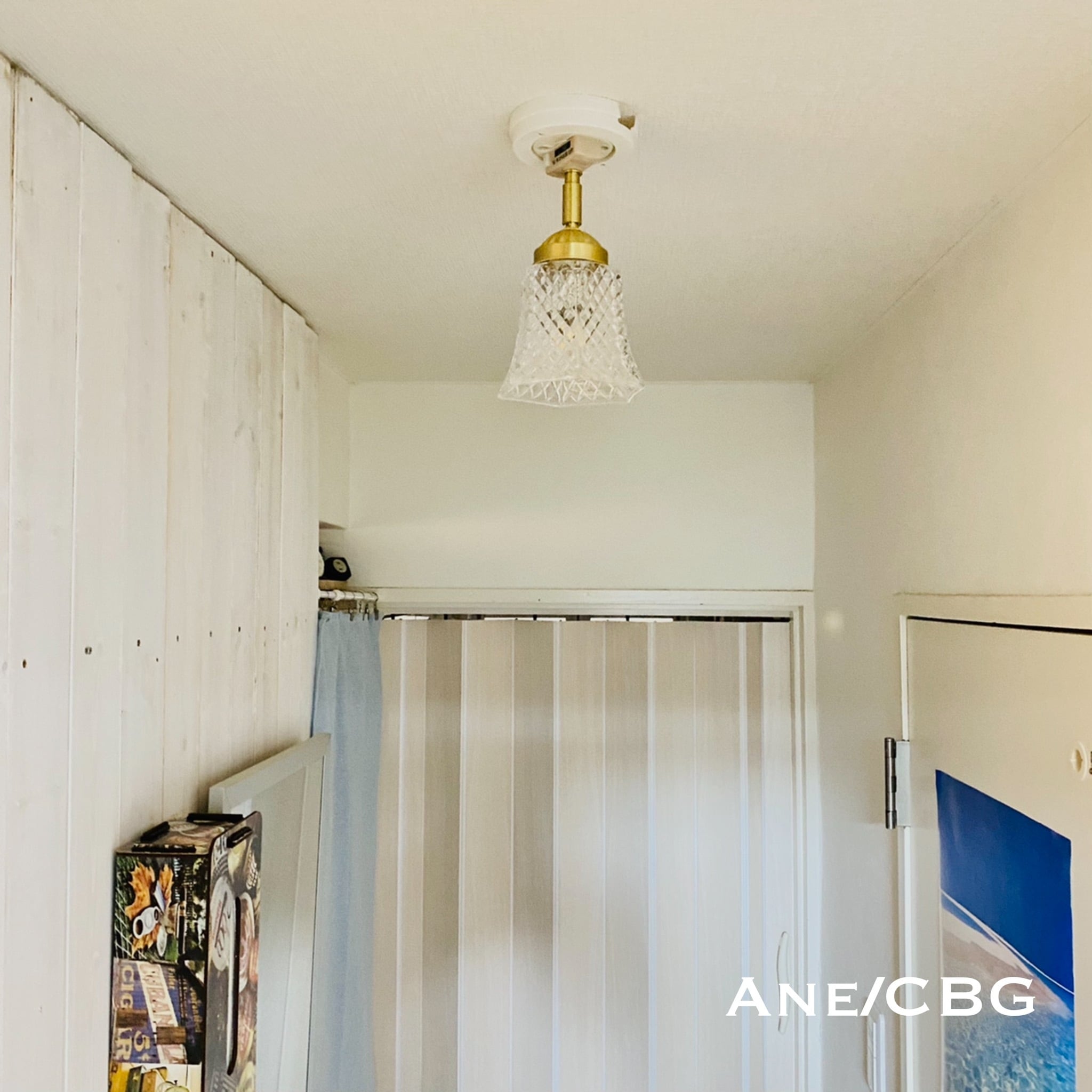 #照明器具 #天井照明 #シーリングライト #インテリア照明 #ガラスシェード #ヴィンテージ #レトロ #シャビー #アンティーク #玄関 #トイレ #洗面所 #廊下 #キッチン #ハワイアン #カリフォルニア #北欧 #真鋳器具 #角度自在器 #簡単取付 #インテリア雑貨