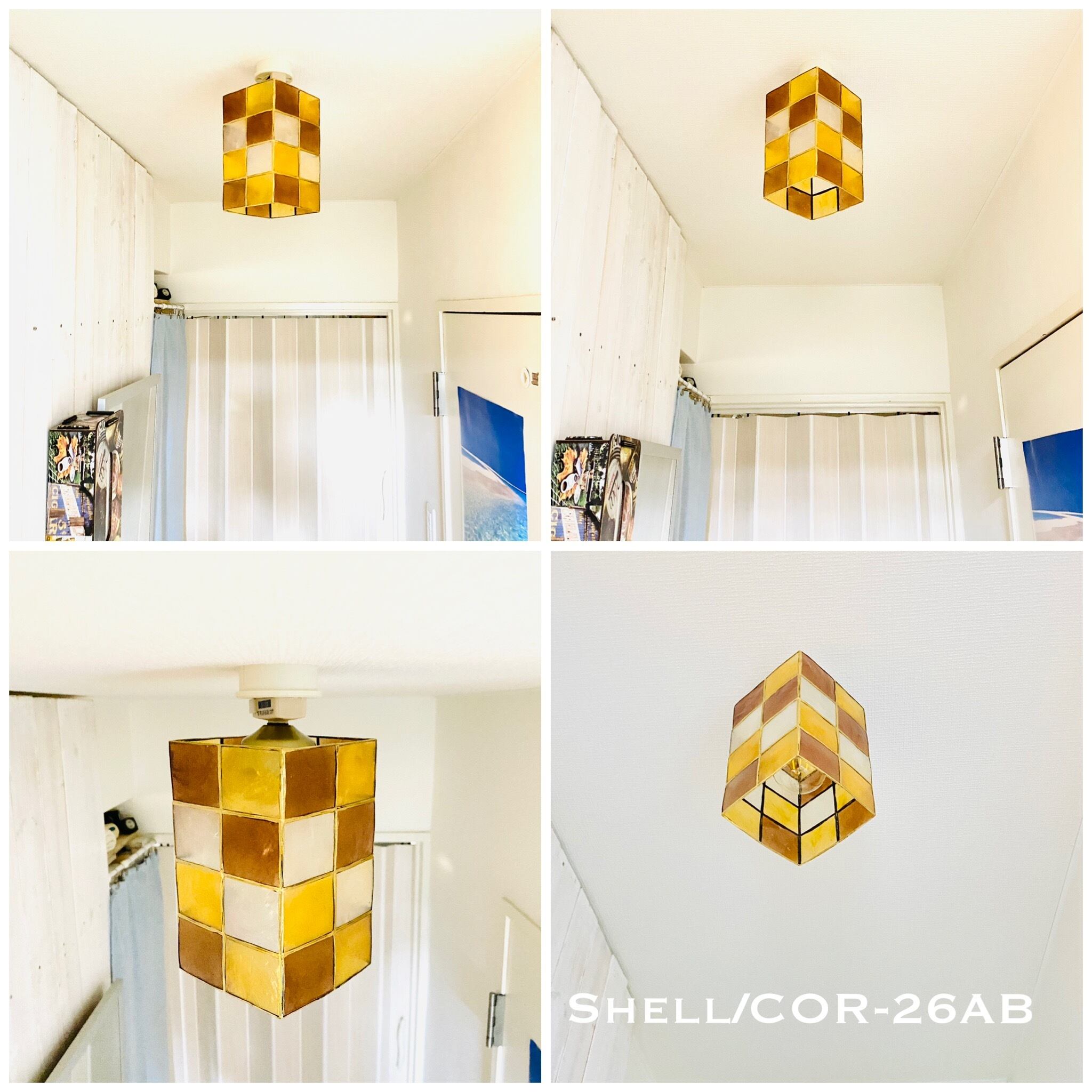 シーリングライト Shell/COR 照明 天井 ライト E26 インテリア カピス貝 ランプシェード ハワイアン 北欧 ミッドセンチェリー ビンテージ レトロ シャビー トイレ 玄関 クローゼット LED 照明器具