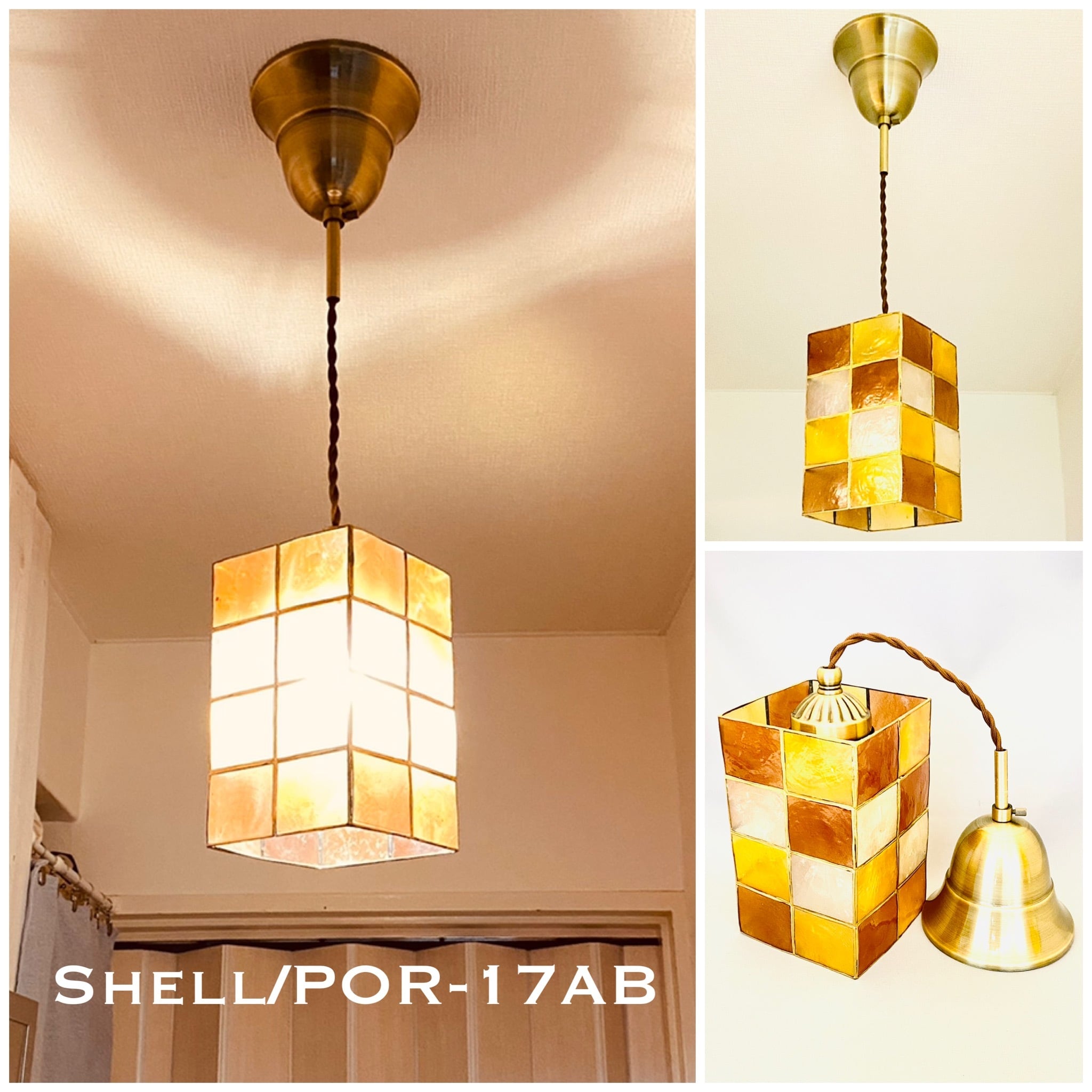 カピス貝 ステンドグラス工法 ランプシェード E17ソケット コード調節収納 真鋳古色メッキ シェードホルダー シーリングカバー LED電球使用可能 白熱灯電球60Wまで(電球別売)
