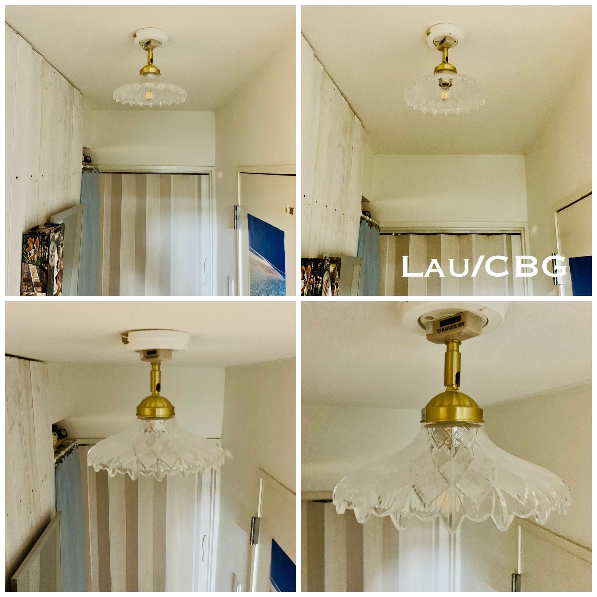 天井照明 シーリングライト Lau/CBG ライト E17 インテリア ガラス ランプシェード 北欧 ミッドセンチェリー ビンテージ レトロ シャビー トイレ 玄関 クローゼット 角度自在器付 真鋳 LED 照明器具