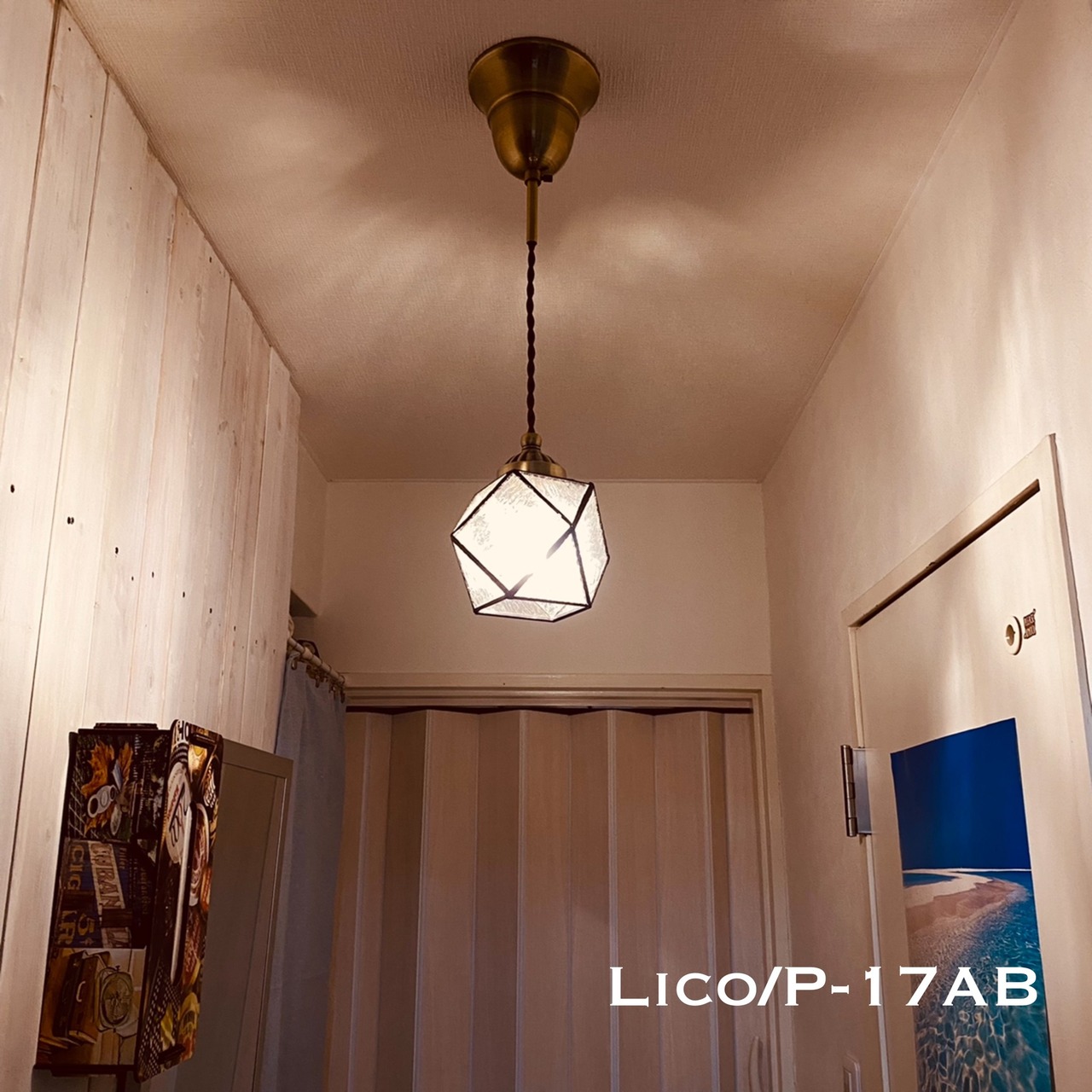 ペンダントライト Lico/PAB 照明 天井 ライト E17 インテリア ステンドグラス ランプシェード コード調節収納 シーリングカバー付 北欧 ミッドセンチェリー ビンテージ レトロ シャビー 玄関 階段 寝室 ダイニング LED 吊下げ 照明器具
