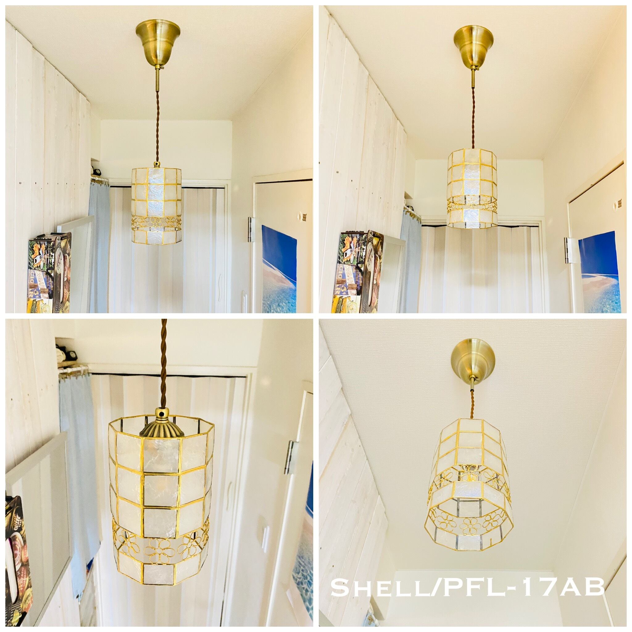 ペンダントライト明 Shell/PFL 照明 天井 ライト E17 インテリア カピス貝 フラワーポイント ランプシェード コード調節収納 シーリングカバー付 ハワイアン 北欧 ミッドセンチェリー ビンテージ レトロ シャビー 玄関 階段 寝室 ダイニング LED 吊下げ 照明器具