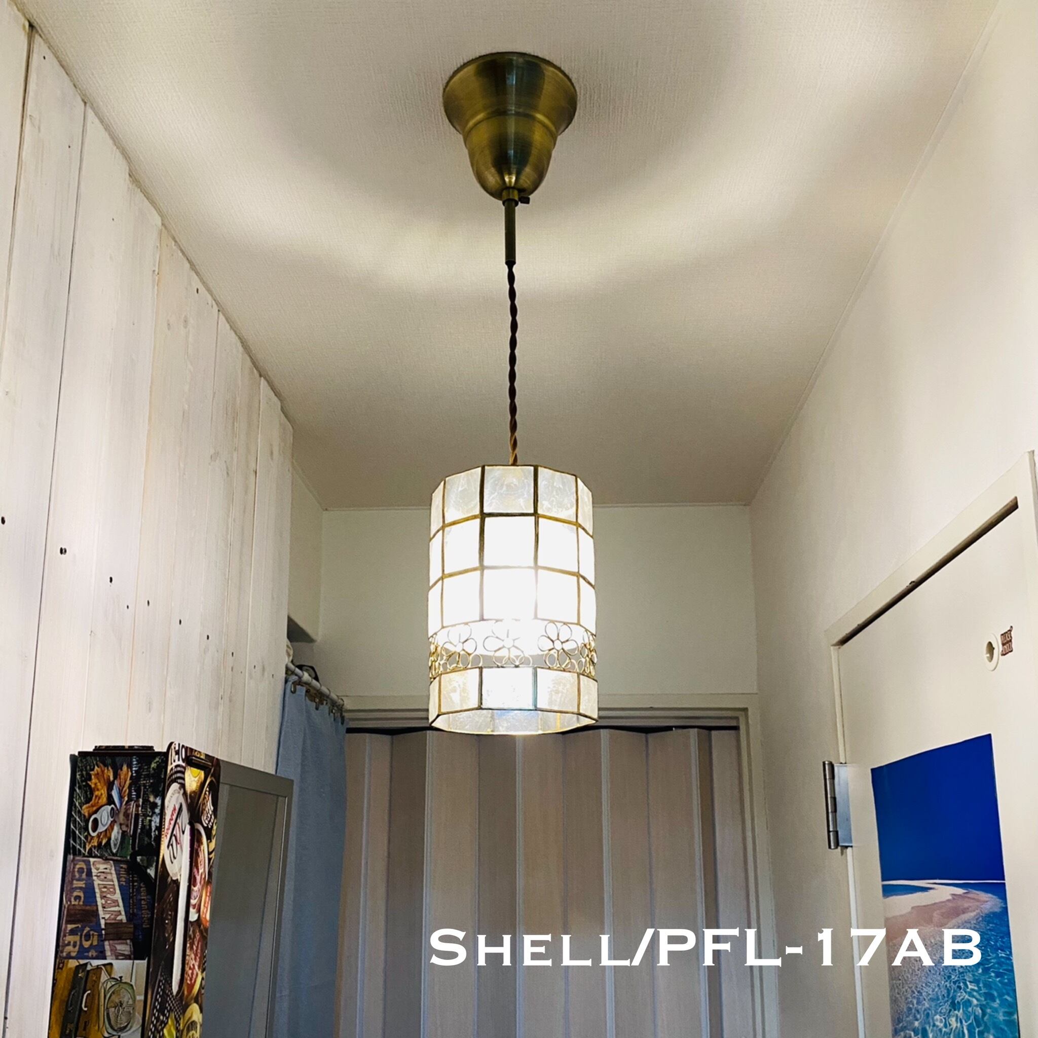 天井照明 Shell/PFLAB ペンダントライト シェル フラワーデザイン カピス貝 ステンドグラス工法 ランプシェード E17ソケット コード調節収納 シーリングカバー シェードホルダー 真鋳古色メッキ LED電球 白熱灯電球 使用可能 白熱灯電球60Wまで 電球別売