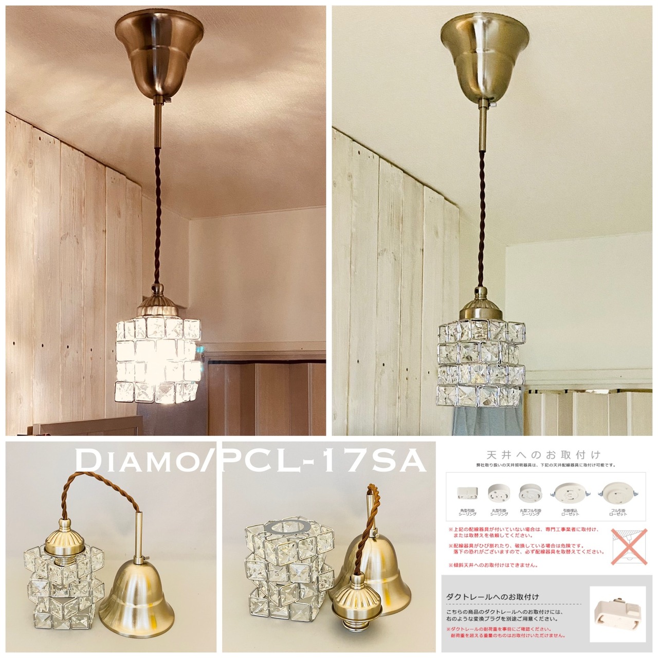 ペンダントライト Diamo/PCHSA 照明 天井 ライト E17 インテリア ガラスビーズ ランプシェード コード調節収納 シーリングカバー付 北欧 ミッドセンチェリー ビンテージ レトロ シャビー 玄関 階段 寝室 ダイニング LED 吊下げ 照明器具