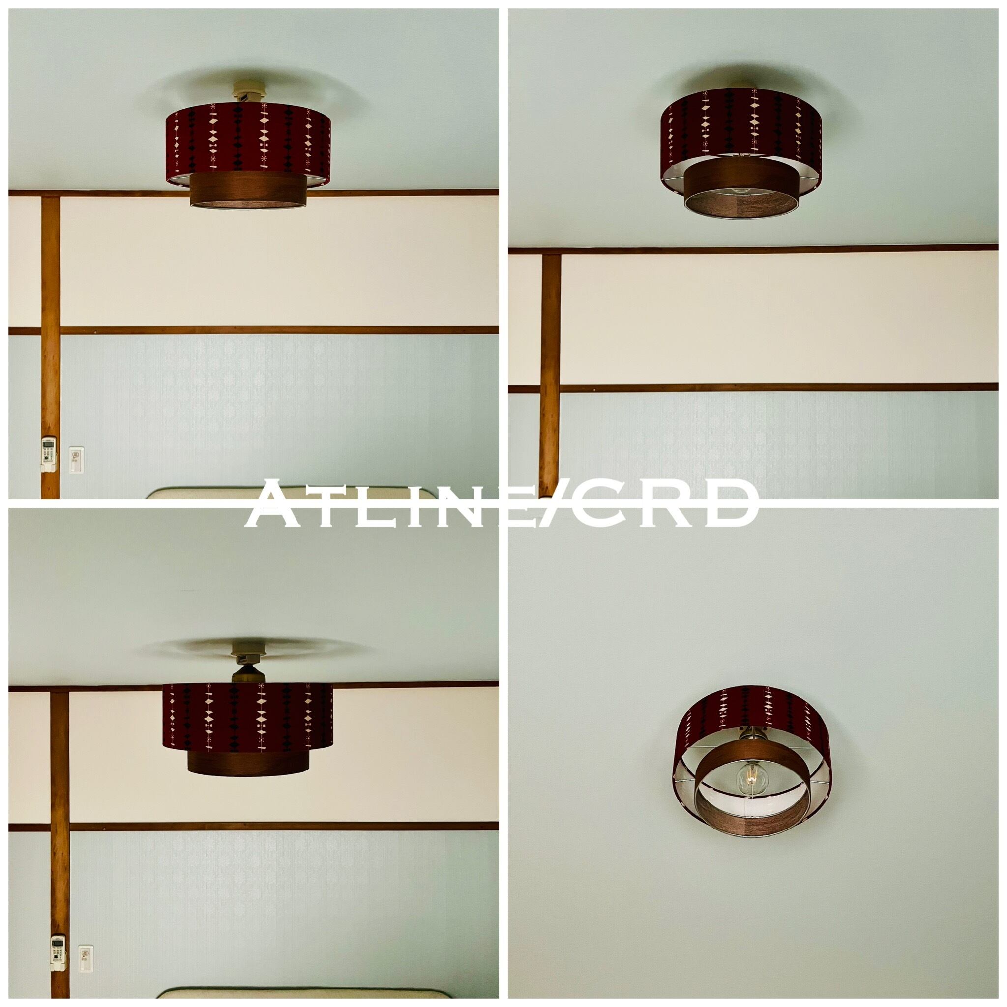 天井照明 シーリングライト Atline/CRD 照明 ライト E26 インテリア アトミックライン生地 タモ天然木突板 ランプシェード 北欧 ミッドセンチェリー ビンテージ レトロ シャビー トイレ 玄関 クローゼット LED【SALE】