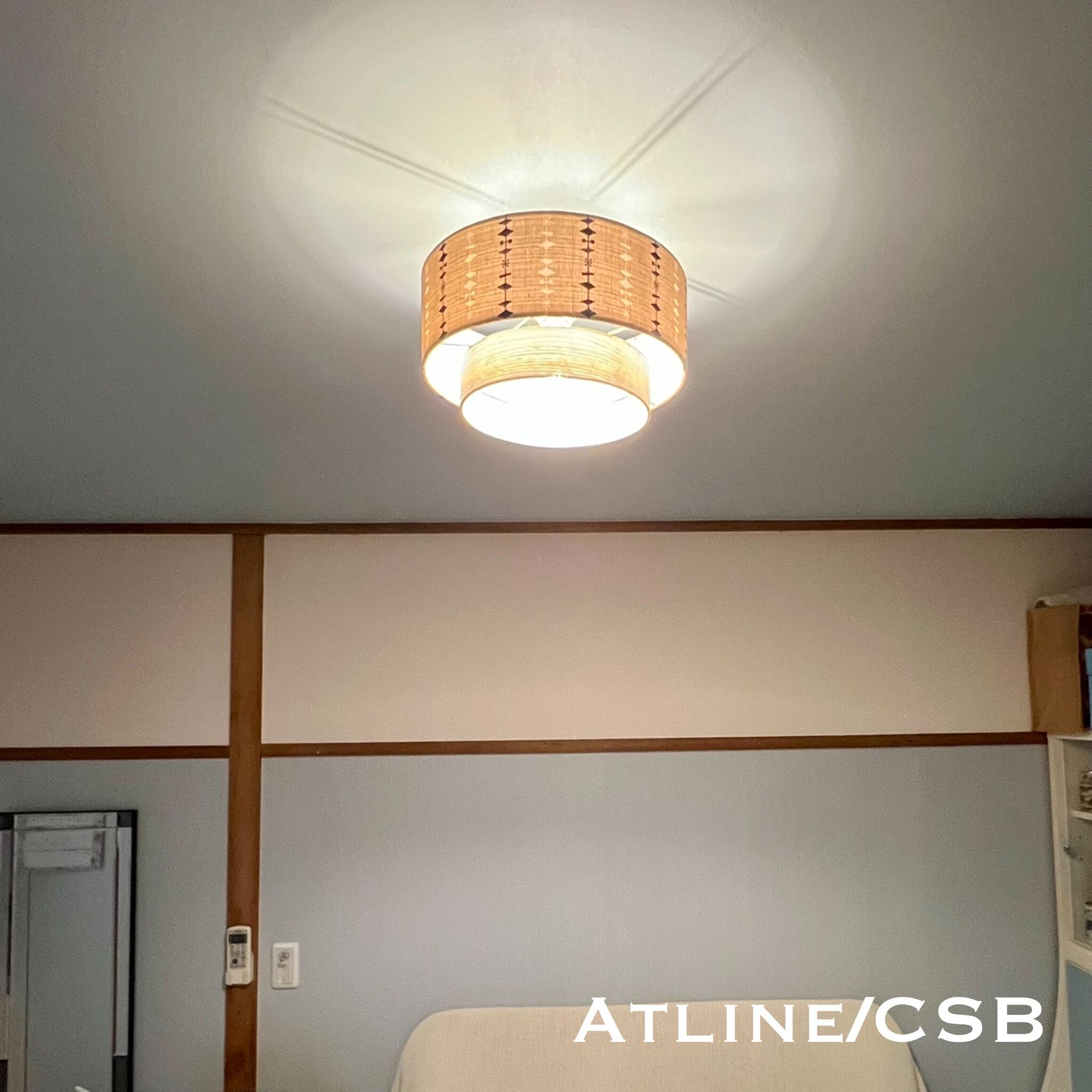 天井照明 シーリングライト Atline/CSB 照明 ライト E26 インテリア アトミックライン生地 タモ天然木突板 ランプシェード 北欧 ミッドセンチェリー ビンテージ レトロ シャビー トイレ 玄関 クローゼット LED【SALE】