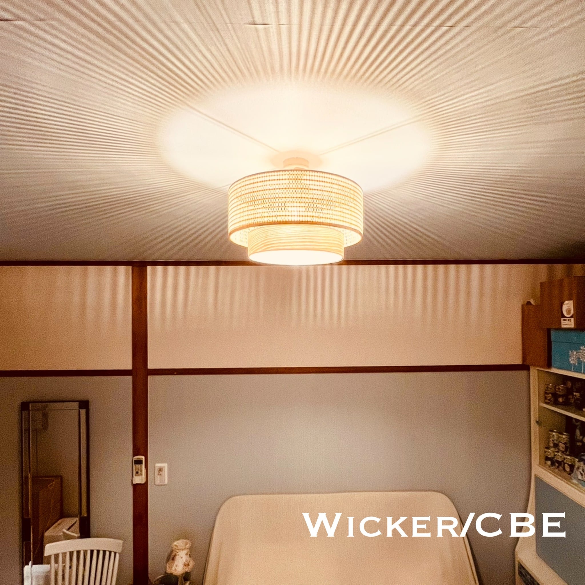 天井照明 シーリングライト Wicker/CBE 照明 ライト E26 インテリア ウィッカー和紙 天然木突板 ランプシェード 北欧 ミッドセンチェリー ビンテージ レトロ シャビー トイレ 玄関 クローゼット LED 照明器具
